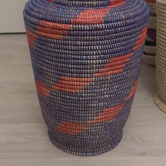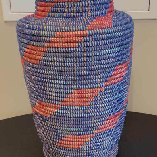 Pot de Fleurs Artisanal Sénégalais – Bleu Foncé et Rouge